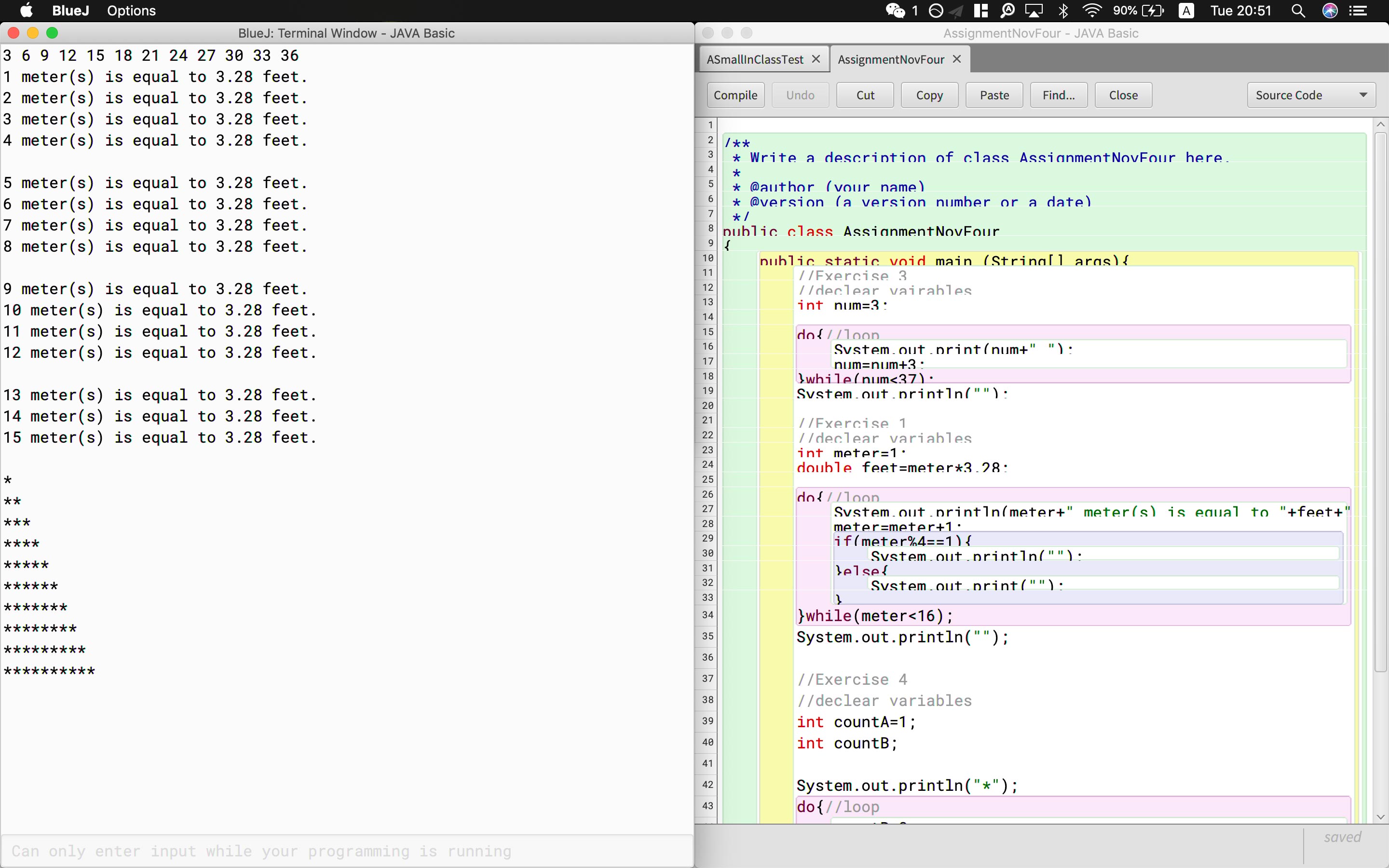 The third program was assigned as a homework. This program mainly required loop, a lot of loops and loops in loops. Initially I didn’t do the prime number one. I won’t tell you the reason for this was I thought it was difficult, so I chose the other easier ones.