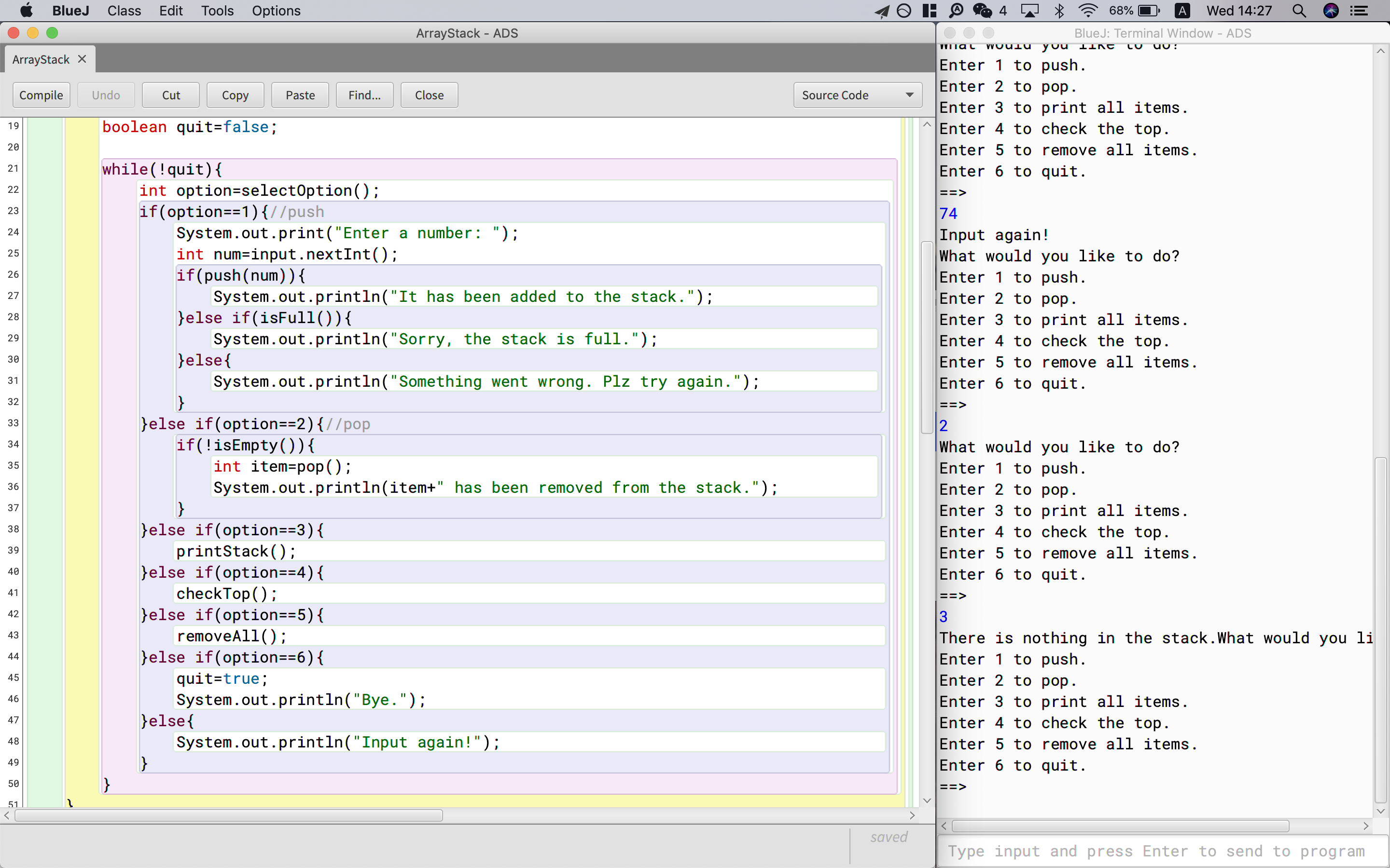 Using this property, we made a program that really works as a stack.