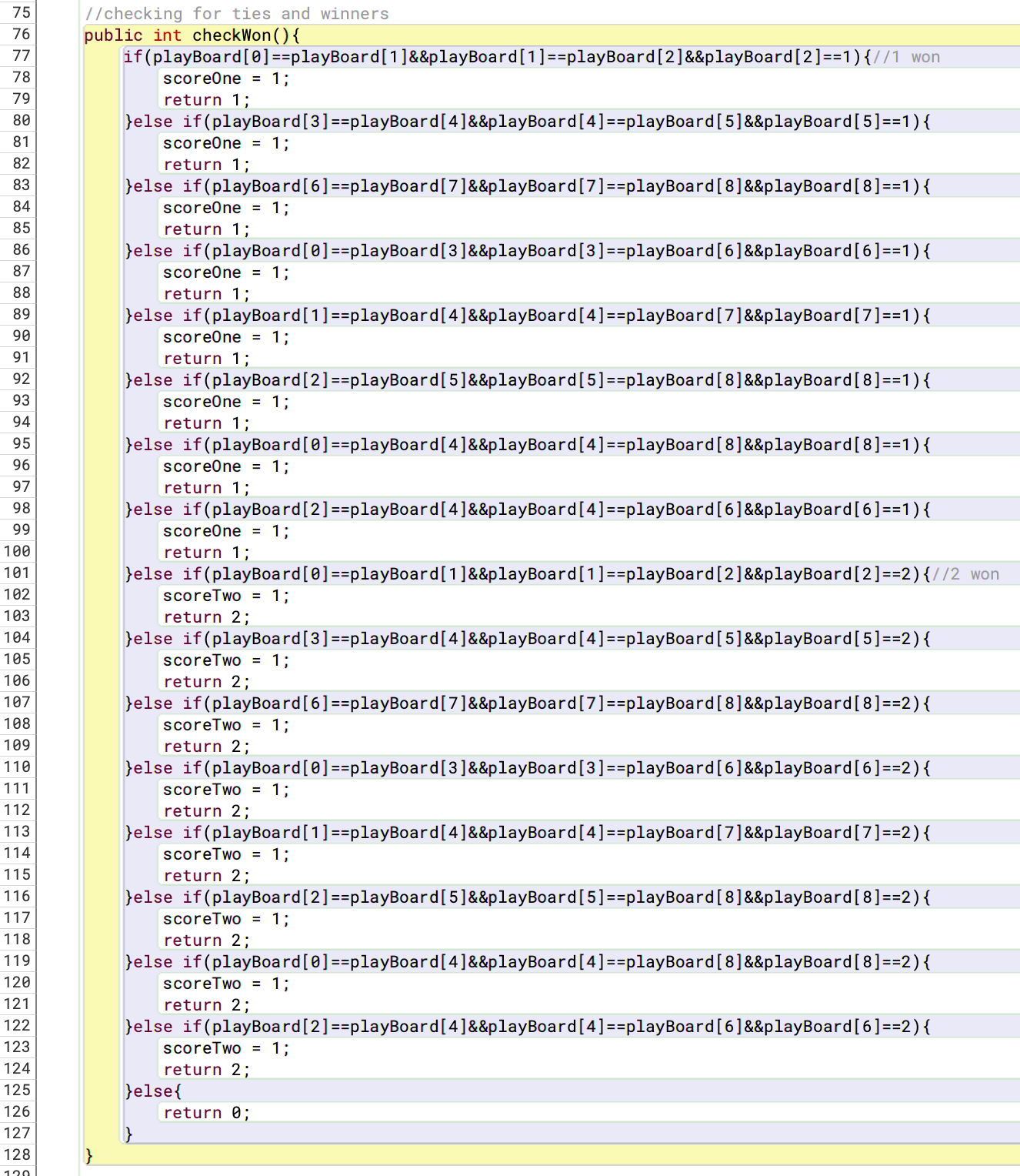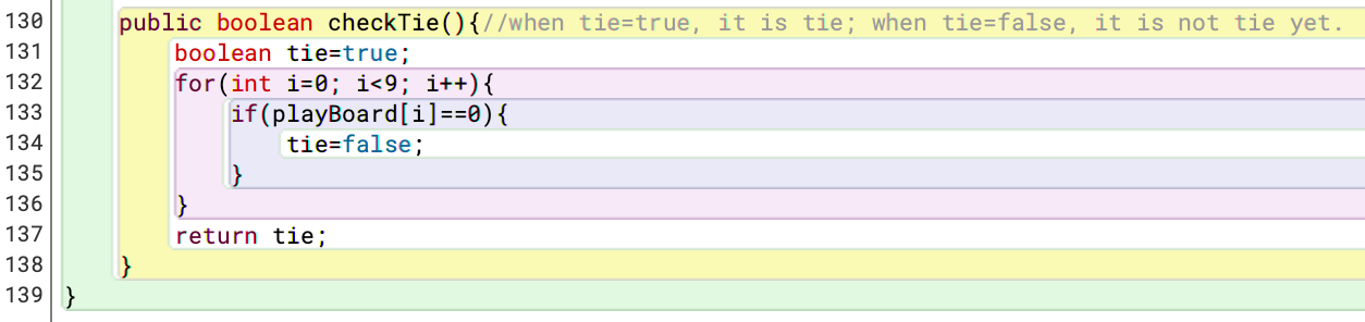 The other one is checkTie. If there is no 0 on the board and no one wins, then the game is tie.