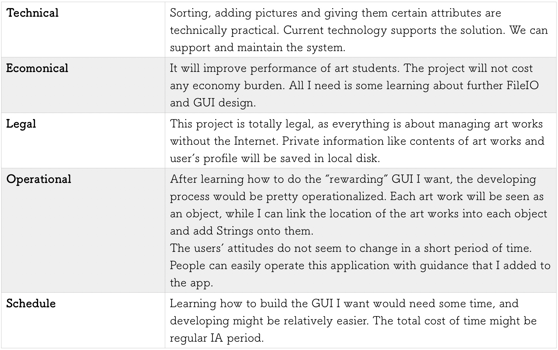 This week, we started out IA project. The first step was to figure out what problem we are gonna solve and find the potential clients and advisor. Then we had an interview with our advisor so that we can take a deep looking on the existing problems and understand it clearer. The attached documents and pictures are the record and feasibility report of my solution.