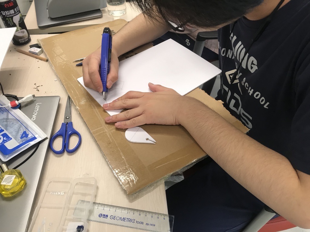 Today, we carried out the experiment, and we converted the flowchart into an electronic version and revised it. At first, we found out that the initial material for the boat is not light enough to get observable result, so I figured out the second generation of the boat: two layers of water-proof tape with a paper in the middle. Although the second generation was still not perfect enough and we decided to use milk box as the material of the boat, I still provided a step in our thoughts. After lunch, I revised the flowchart of the process of the experiment. I used computational thinking during the process: first I divided the whole process into three parts (preparing part, experimenting part and analysis part). Then I determined that the preparation of boats should be done before the experiments, so I put “cut the box” before the loop of the trails. Finally, after all trials are done, we will calculate and process the data, and then get a conclusion whether the hypothesis is approved or not.