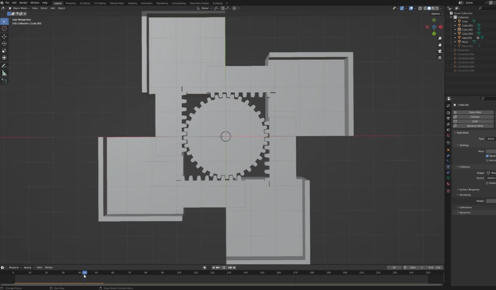 I tested the gear system in Blender to make sure the teeth have the right size.