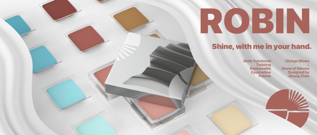 Robin the Eyeshadow Palette is an independent product design, aiming to explore a “twisting” operation logic that simplifies the process of opening an eyeshadow palette. The powder containers are interchangeable, so users could only buy the colors they need, instead of replacing the whole box, which is more sustainable. The digital mockup was built in Blender and rendered in KeyShot, while the physical prototype was 3D printed by resin. During the process, I gained modeling and testing skills, and learned how to finish 3D-printed components with sandpaper and spray paints.