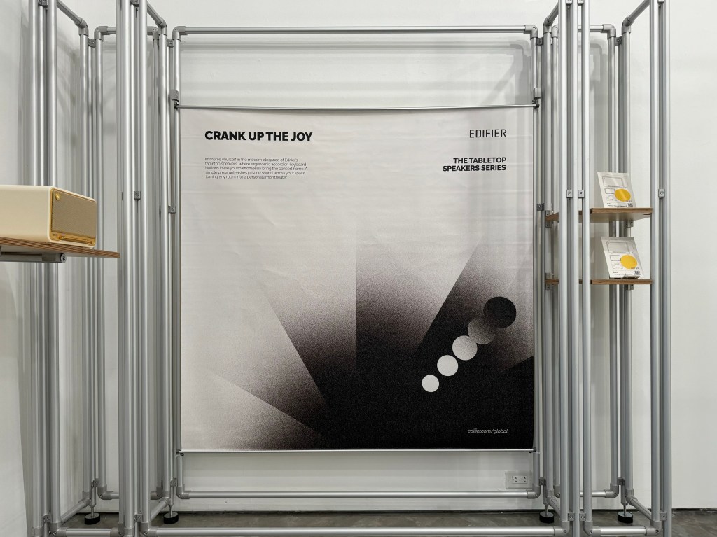 This project required close collaboration among several teams: the Edifier international operations team (where I was based), the hardware design team responsible for the exhibition space, the construction team, and the product managers. As a graphic and environmental designer, my role was to align the needs across departments, study New York’s culture, highlight the product’s qualities, ensure the quality and transportability of poster materials, and coordinate the spatial properties of the curation space.
