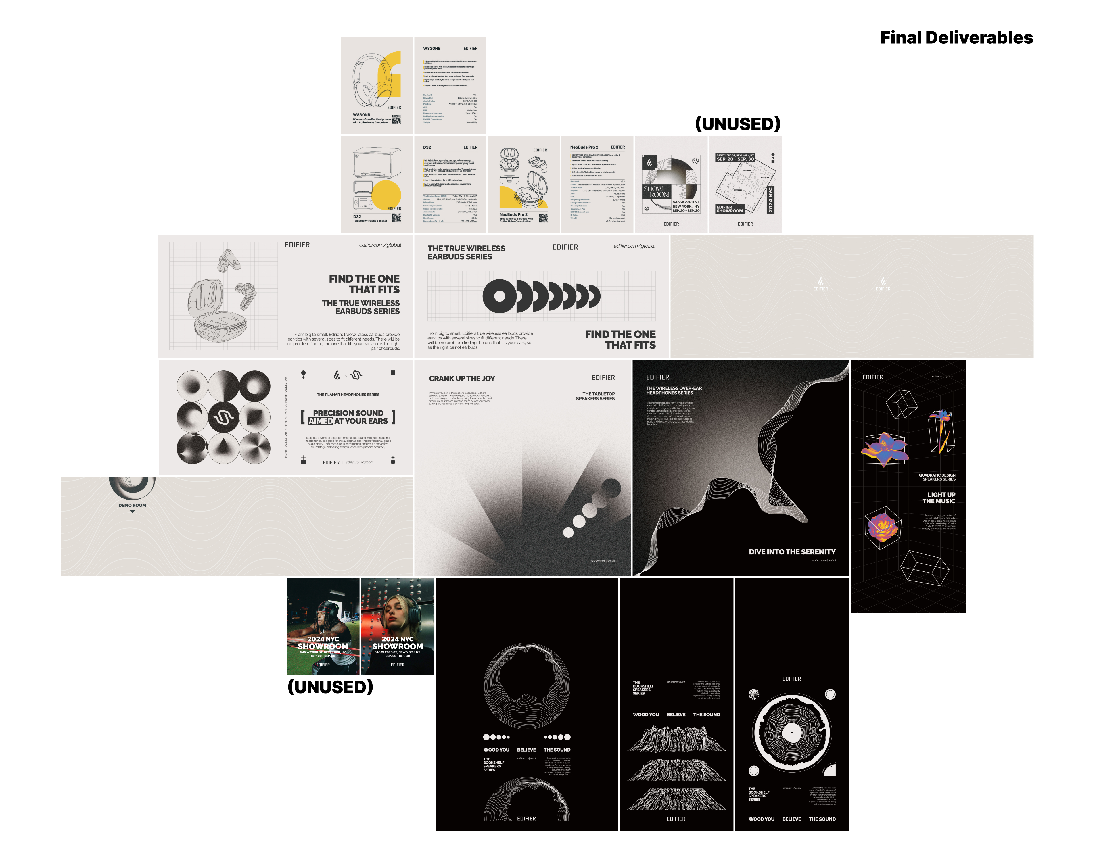 The SOUNDSTUDIO pop-up shop event held in NYC at the end of September 2024 is a commercial products showcase of Edifier, an audio equipment company. I worked in the company as a graphic design intern in the summer of 2024 and produced a series of graphic visualizations for this event. I fully contributed to the conceptual posters for the 6 product lines, and collaborated with my colleagues on the venue setups, social media materials, poster printing, etc.