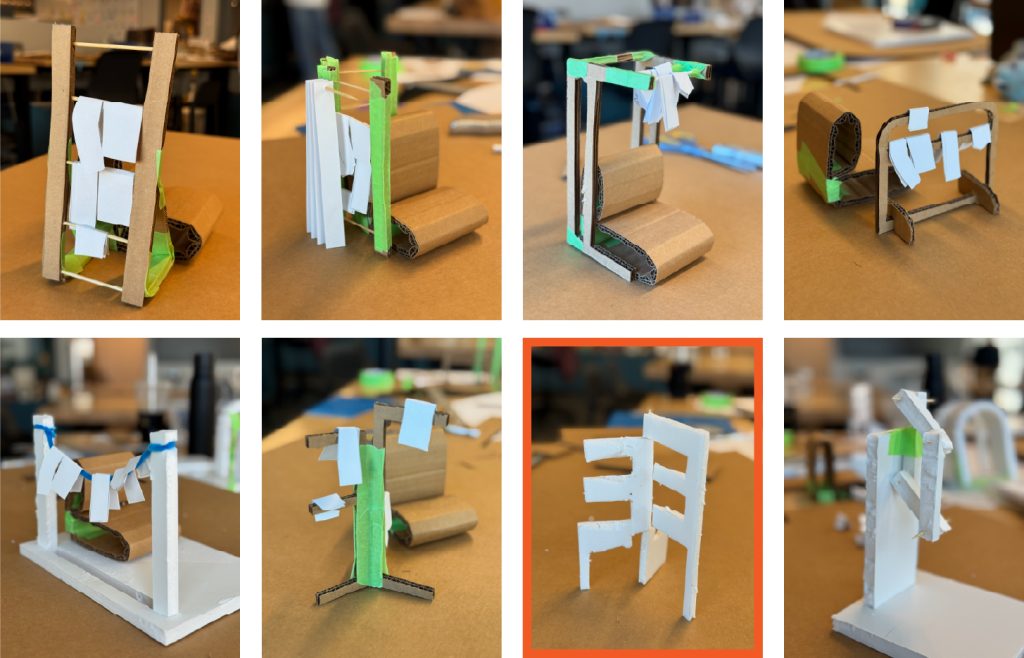 I kept iterating in the physical workspace. I made several sketch models, some from the 2D sketches and some were newly generated during the making process. Finally, I narrowed down to the door-shape solution and decided to move on with it.